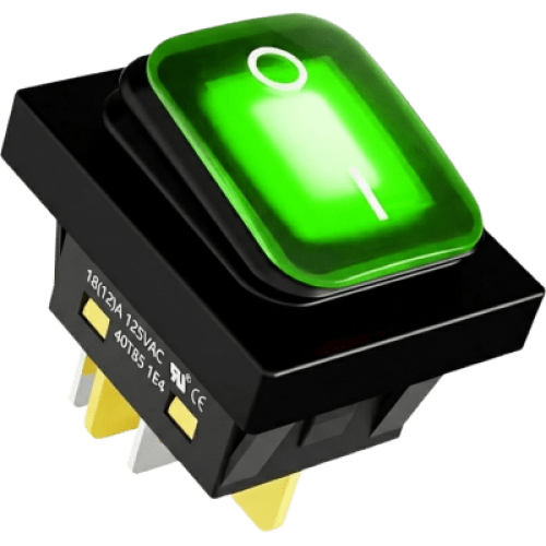 Interruptor tipo Switch con Led Color Verde / IP65 / Diseño Industrial / NO, COM, NC / Terminales tipo F1
