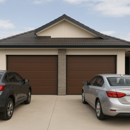 Puerta de Garage de Alta Calidad / Linea Central / Imitacion madera / oscura / 14x9 pies / AISLADA / Estilo Americana.