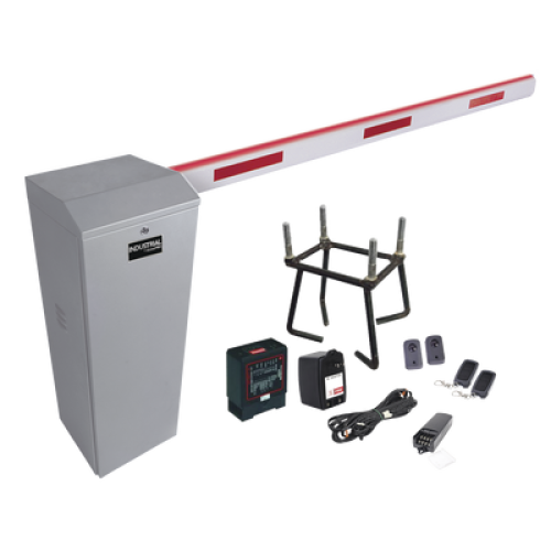 Kit COMPLETO Barrera Derecha XB / Brazo de 5 Metros con Iluminacion LED Rojo-Verde / Incluye Sensor de masa, Transformador, Lazo, Ancla, Fotoceldas 2 Controles Inalámbricos