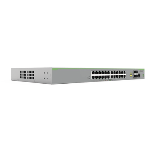 El FS980M/28 cuenta con 24 puertos 10/100TX y 4 puertos 100/1000X SFP uplink/stacking.