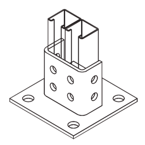 Base Cuadrada con 4 perforaciones para Perfil Doble.