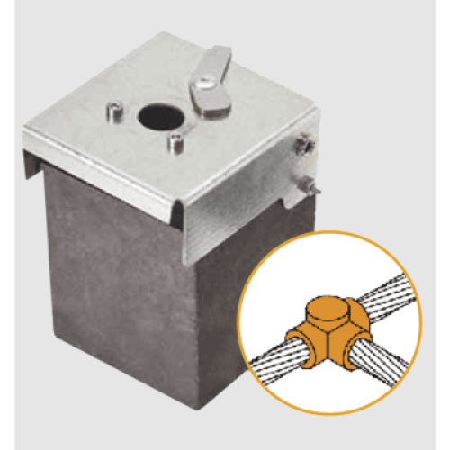Molde de grafito horizontal unión en T horizontal de cable 1/0 AWG (pasante) con cable 1/0 AWG (terminal).