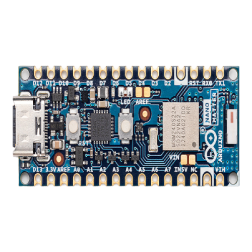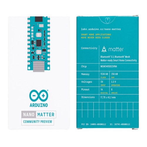 La Arduino Nano Matter es una placa de desarrollo IoT de alto rendimiento basada en el microcontrolador MGM240S de Silicon Labs con núcleo Arm Cortex-M33 a 78 MHz. Diseñada específicamente para aplicaciones de automatización del hogar, edificios inteligentes e industrial IoT, integra soporte nativo para el estándar Matter, Bluetooth Low Energy 5.3 y OpenThread. Su arquitectura compacta de 18x45 mm incluye 1536 kB de memoria Flash, 256 kB de RAM y interfaces completas como USB-C, 20 canales ADC de 12-bit, 4 DAC de 12-bit, y múltiples puertos UART, I2C y SPI. La placa ofrece flexibilidad de alimentación mediante USB-C, VIN (6-21V) o 5V, con opciones de bajo consumo energético para aplicaciones remotas y de monitorización continua.