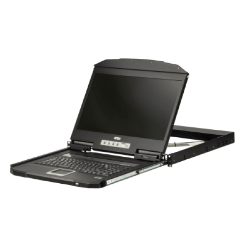 Consola LCD KVM Ultra Short Depth Single Rail | Pantalla Ancha 18.5" LED | Resolución Full HD 1920x1080 @ 60Hz | USB y HDMI | Teclado y Touchpad Integrados | Diseño Compacto para Racks | MIL-STD-810G | Compatible con KVM HDMI