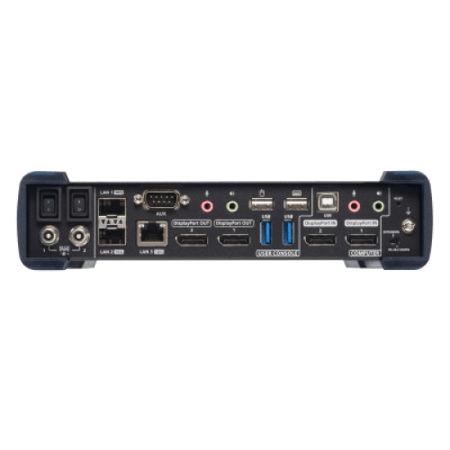 Receptor KVM sobre IP Dual Display 5K DisplayPort | Transmisión sin Pérdidas Cero Latencia | Resolución 5120x2880 @ 30Hz | Dual SFP+ 10Gbps hasta 10 km | Redundancia de Energía y Red | Encriptación AES-256 | Compatibilid
