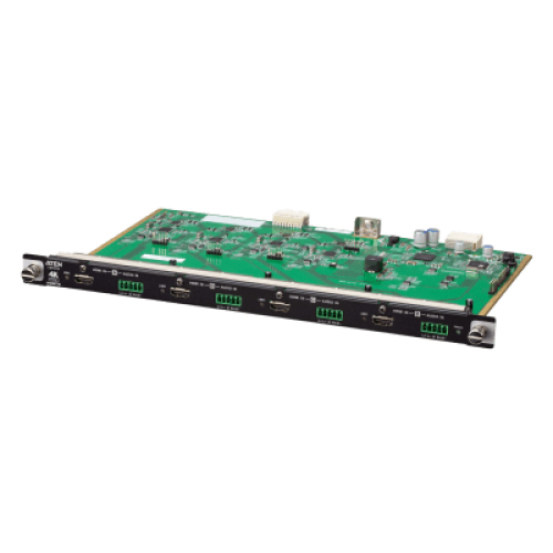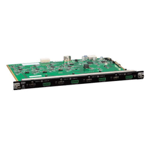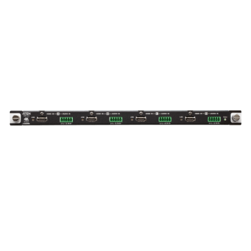 Es una tarjeta de entrada HDMI 4K real que se combina con un switch de matriz modular de ATEN para facilitar el enrutamiento de 4 fuentes de audio/vídeo HDMI a 4 pantallas con compatibilidad con imágenes de alta definición 4K real. Además de la interfaz HDMI que transporta la señal de audio/vídeo digital, el VM7824 tiene también 4 puertos de entrada de audio estéreo que permiten la incrustación de audio estéreo.