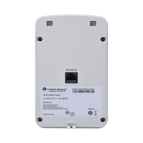 El punto de acceso Indoor Wall Plate e425H para interiores de clase empresarial cnPilot ™ de Cambium Networks basada en estándar 802.11ac Wave 2, es perfecto para hoteles, centros turísticos y residencias o cualquier lugar en interiores que necesite un AP montado en la pared con múltiples Puertos Gigabit con salida PoE.