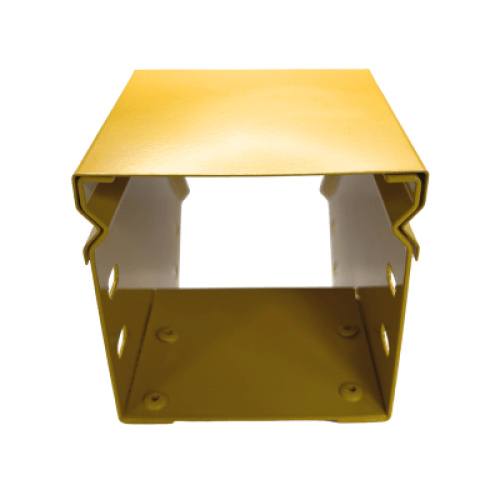 CHFIBER CURVA VERTICAL EXTERIOR A 45° DE ALUMINIO PERALTE 4" ANCHO 4" RADIO 8" CON RECUBRIMIENTO EN PINTURA EPÓXICA, INCLUYE TAPA , UN PAR DE COPLES Y TORNILLERÍA.