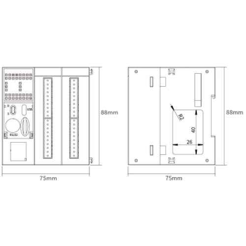 Módulo CPU PLC L02S / 24 E/S (12DI+12DO) / 8 Analógicas (4AD+4DA) / Ethernet Integrado / RS485*2 + RS232 + CAN / Capacidad 32k Pasos / Hasta 512 Puntos E/S / Terminales Push-Type