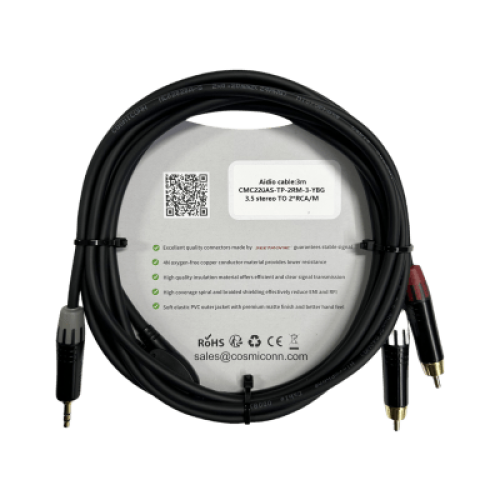 Cable 3.5mm a 2 RCA, conectores negros, con diferenciador de blanco y rojo en RCA MT380-RD - MT380-WH - MTP3C-BG, length 3m