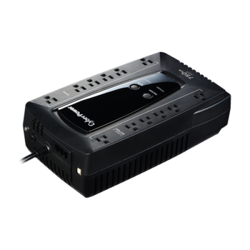 El CyberPower AVRG750U ofrece protección de respaldo de energía para dispositivos multimedia, equipos de TI, computadoras, dispositivos NAS/almacenamiento, telecomunicaciones, redes, seguridad/emergencia y sistemas de vigilancia. Incorpora topología interactiva de línea con regulación automática de voltaje (AVR) para una potencia de salida de CA estabilizada.