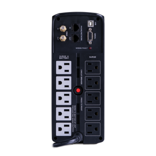 CyberPower BRG850AVRLCD garantiza protección de respaldo de energía para sistemas de cine en casa, dispositivos multimedia, equipos de TI, computadoras, estaciones de trabajo, dispositivos NAS / Storage, dispositivos de telecomunicaciones, dispositivos de red, sistemas de seguridad / emergencia y sistemas de vigilancia. El producto cuenta con tecnología de ahorro de energía para ahorrar costos de electricidad, al tiempo que proporciona respaldo de batería, tomacorrientes protegidos contra sobretensiones y filtro EMI para proteger sus dispositivos.