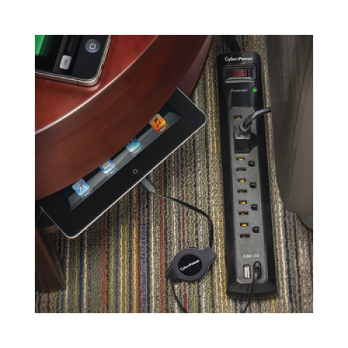 Multicontacto Con Supresor de Picos, Voltaje de Entrada 125 Vca NEMA 5-15P, Con 6 Salidas NEMA 5-15R, 2 Puertos de Carga USB, 1200 Joules