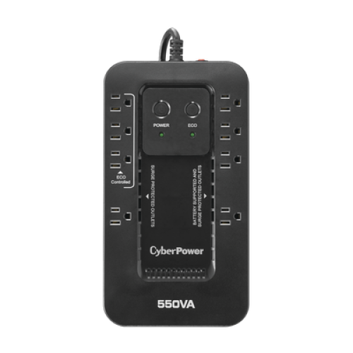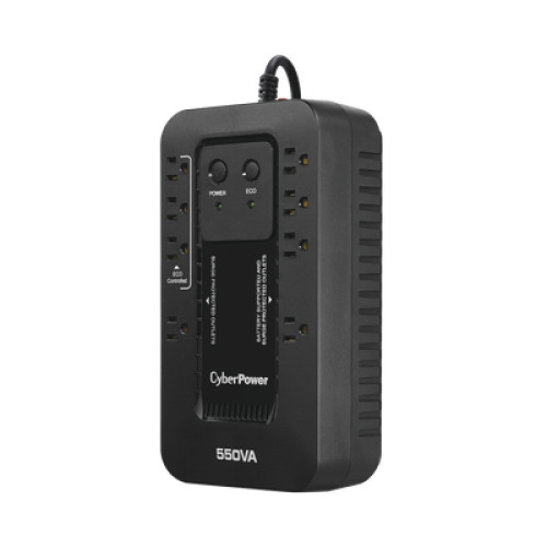El EC550G salvaguarda PCs y otros equipos electrónicos de apagones, bajas y caídas de voltaje, picos y otras anormalidades de energía. Su circuito integrado ofrece protección de picos confiable y respaldo de batería durante interrupciones de energía. Este UPS utiliza un diseño de alta eficiencia GreenPower UPS™ para reducir consumos de energía y además está calificado por ENERGY STAR®.