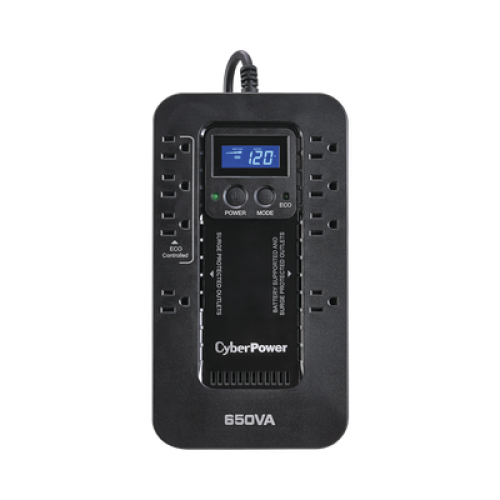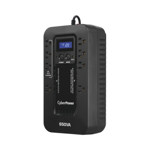 El EC650LCD salvaguarda PCs y otros equipos electrónicos de apagones, bajas y caídas de voltaje, picos y otras anormalidades de energía. Su circuito integrado compuesto ofrece protección avanzada de energía. La tecnología GreenPower UPS™ reduce los costos de energía del UPS y es un producto que cumple con ENERGY STAR®. El LCD multifunción provee al usuario la capacidad de revisar el estado operativo del UPS y asistir en solución de problemas de anormalidades de energía.