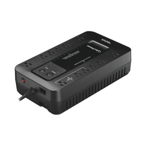 El EC750G salvaguarda PCs y otros equipos electrónicos de apagones, bajas y caídas de voltaje, picos y otras anormalidades de energía. Su circuito integrado ofrece protección de picos confiable y respaldo de batería durante interrupciones de energía. Este UPS utiliza un diseño de alta eficiencia GreenPower UPS™ para reducir consumos de energía y además está calificado por ENERGY STAR®.