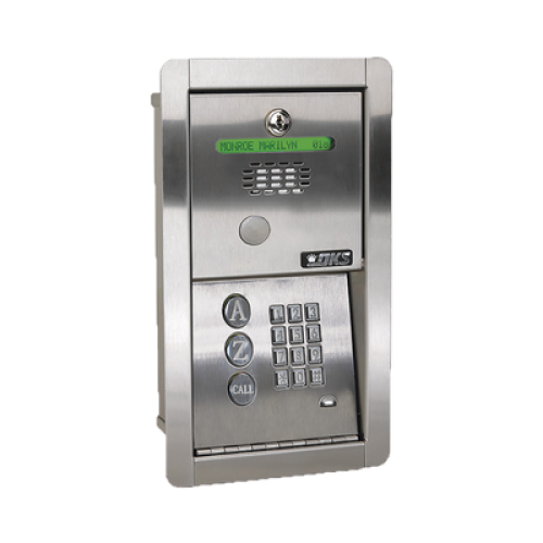 Audioportero Telefónico DKS Con Directorio / 100 Números Telefónicos / Control Para 2 Puertas / Gabinete Para Empotrar / Marcación a 16 Digitos / Linea análoga o digital