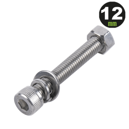 1 Tornillo Allen Milimétrico de Acero Inoxidable M8-1.25 x 12/ Con 1 Tuerca, 1 Arandela de Presión y 1 Plana / Para Montajes de Módulos Foto Voltaicos .