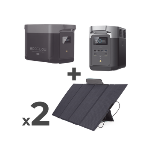 Kit de Estación de Energía Portátil 2048Wh + Batería Externa 2048Wh + 2 Paneles Solares Flexibles 400W (4096Wh, 800W Totales)