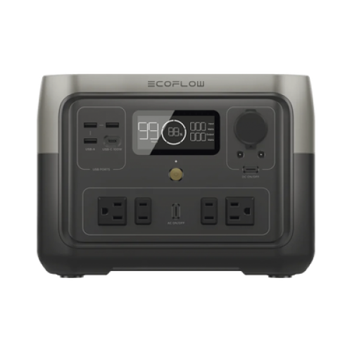 EcoFlow River 2 Max | Estación de Energía Portátil 512Wh Litio LFP / 4 AC 500 W (Max. 1000W) / 1 USB-C 100W / 3 USB -A 12W / Cargador de Coche 8A a 12 o 24V / Conectividad WiFi y Bluetooth (App) / Carga Solar 220W Max.