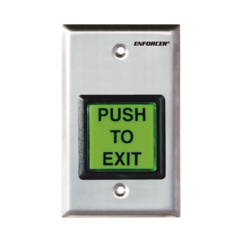 Botón de Salida / Con Iluminación / Con Placa de Pared de Acero Inoxidable / IP65 / Voltaje 12 / 24 Vcd / Mensaje de Idioma Intercambiable / 3 Placas de Idioma Incluidas