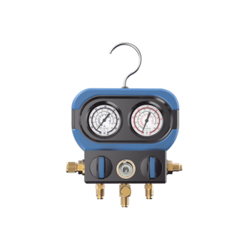 Manifold de 2 Válvulas AMAA para Refrigeración / Compatible con R22, R32/R410A, R404A, R407C / Escala de Manómetro Multigas / Interfaz 5/16" SAE / Rango de Vacío -30 inHg / Presión Máxima 500 psi / Resistente