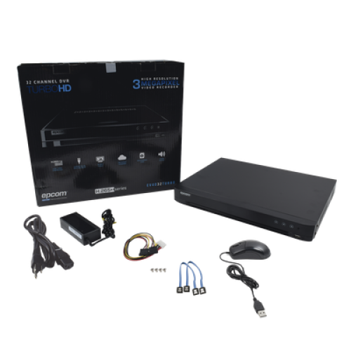 DVR 4 Megapixel / 32 Canales TURBOHD + 8 Canales IP / 2 Bahías de Disco Duro / 1 Canal de Audio