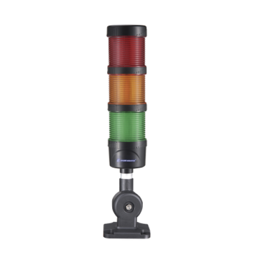Torre LED Indicadora de estado de 3 niveles color Rojo, Ámbar y Verde, con Buzzer integrado a 85 dB, a 24 VCD con Montaje incluido de 60 mm de diámetro