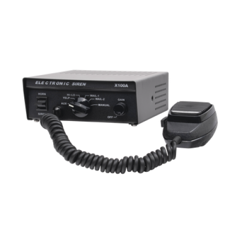 Sirena Vehicular de 100W de Potencia, Con Switch Giratorio de 6 posiciones y Micrófono Integrado de Uso Rudo
