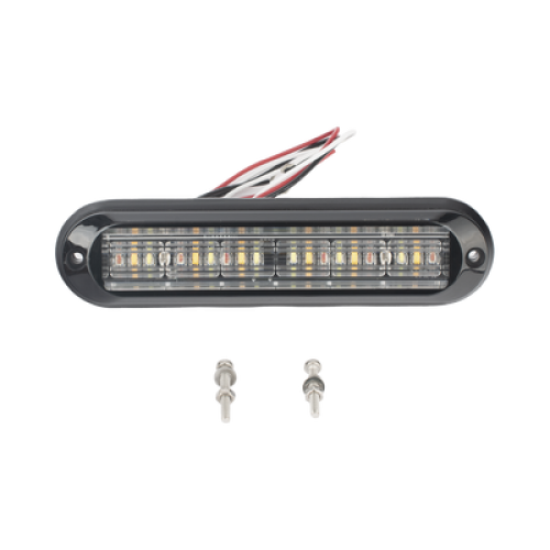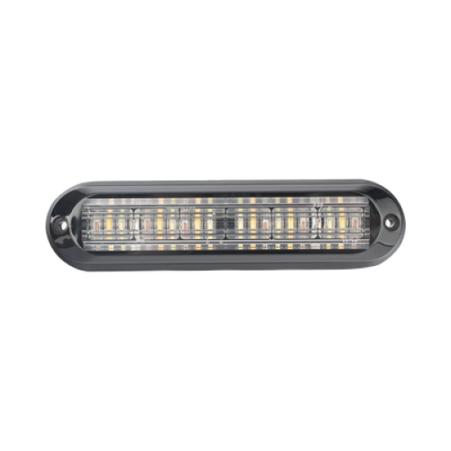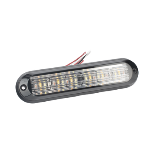 Luz Auxiliar, Ultra Brillante, IP67, 18 LEDs, Tricolor, Color Rojo/Claro/Ambar, con mica transparente y bisel negro