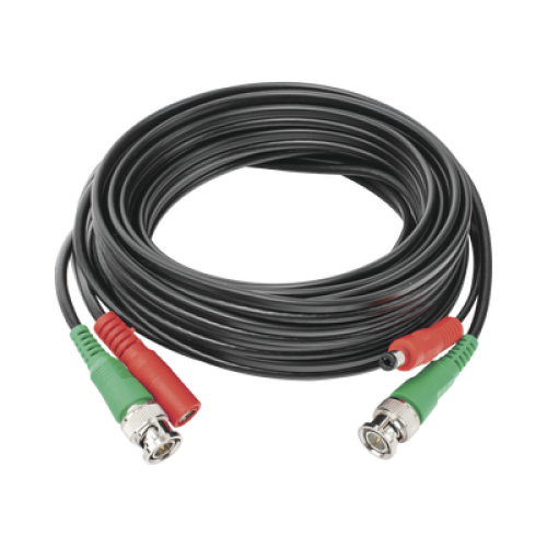 Cable Coaxial armado con conector BNC y Alimentación, longitud de 10m, Optimizado para 4K excelente calidad de transmisión, sin pérdida de señal. Clasificado para su uso en sistemas de circuito cerrado de televisión.