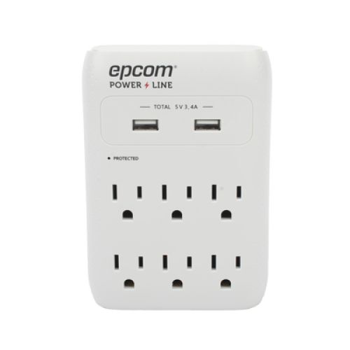 Multicontacto de Pared 110 Vca / Supresor de Picos 1080 Joules / 6 x Nema 5-15P / 2 x USB (5V @3.4A)
