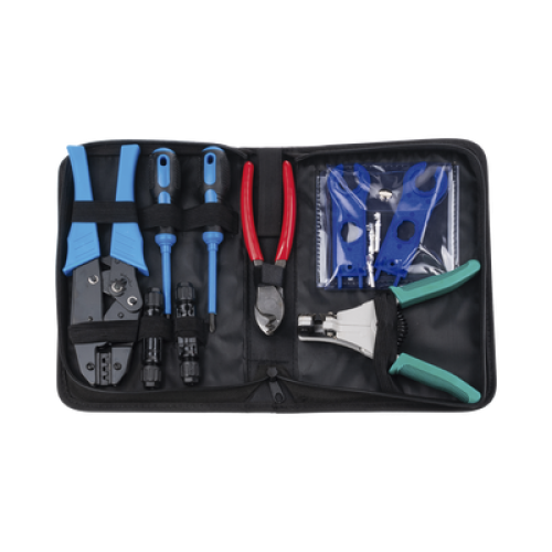 Juego de Herramientas y Accesorios, para Instalación de Sistema Solar. Incluye: Pinzas (3), Desarmadores (2), Llaves (2) y Accesorios (7).