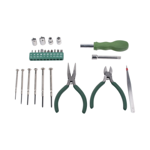 Juego de Herramientas en Estuche Portátil con 25 Pzas. (Desarmadores Finos + Pinzas + Puntas + Maneral).