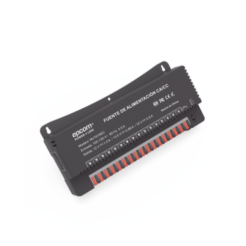 Fuente de Poder / Para 16 Cámaras / Ajustables a 12 o 13.5 o 15 Vcc / 16 Amperes / Instalación en Pared.
