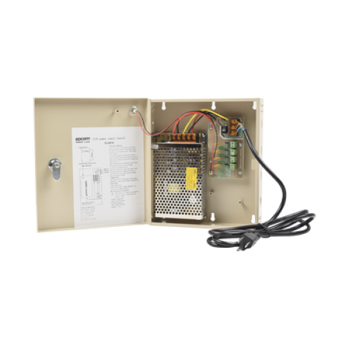 Fuente de poder profesional para CCTV de 12 Vcc @ 5A, para 4 cámaras ; Voltaje de entrada de 100-240 Vca