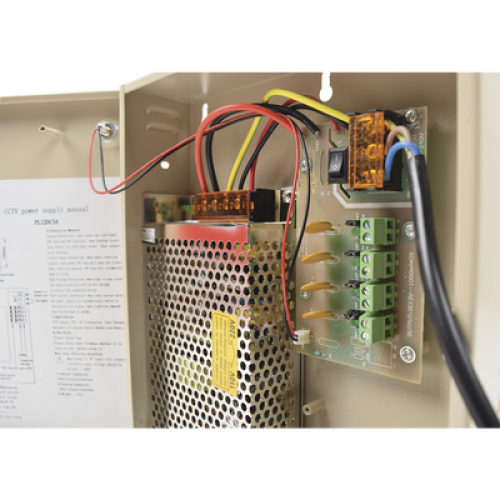 Fuente de poder profesional para CCTV de 12 Vcc @ 5A, para 4 cámaras ; Voltaje de entrada de 100-240 Vca
