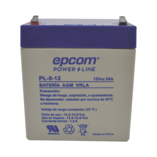 La serie de baterías EPCOM POWERLINE, están diseñadas con tecnología AGM-VRLA (Fibra de vidrio absorbente, con válvulas de regulación), placas de alto rendimiento y electrólito para proporcionar una salida de energía adicional. Las baterías de la serie EPCOM POWERLINE son baterías de respaldo para equipos electrónicos, con una vida útil de diseño flotante de 5 años a 25°C, aprobado por UL (MH64542).