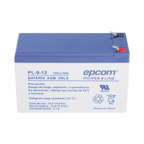 La serie de baterías EPCOM POWERLINE, están diseñadas con tecnología AGM-VRLA (Fibra de vidrio absorbente, con válvulas de regulación), placas de alto rendimiento y electrólito para proporcionar una salida de energía adicional. Las baterías de la serie EPCOM POWERLINE son baterías de respaldo para equipos electrónicos, con una vida útil de diseño flotante de 5 años a 25°C, aprobado por UL (MH64542).