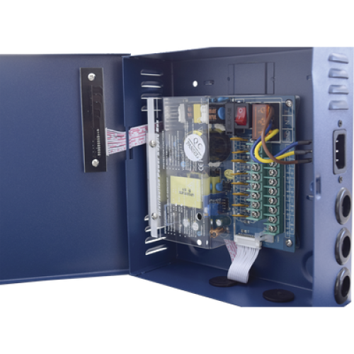 Fuente de alimentación profesional de 12-15 Vcc @ 8 Amper ; para 8 cámaras, voltaje de entrada : 96-264 Vca