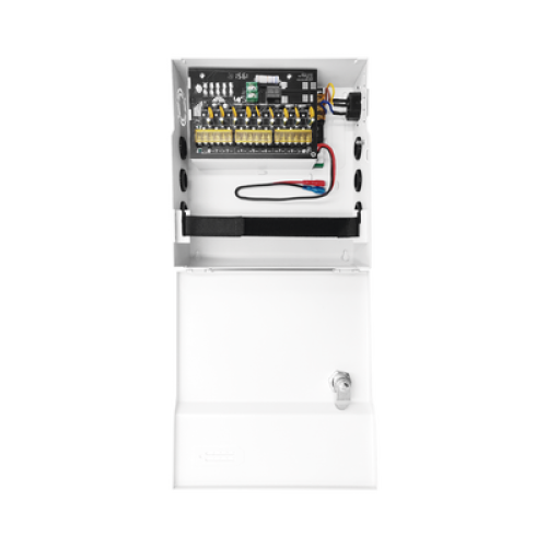 Fuente de Poder con ajuste de voltaje de 11- 15 Vcc / 10 A / 9 Salidas / Capacidad de Batería de Respaldo / Requiere Batería / Voltaje de Entrada 96-264 Vca