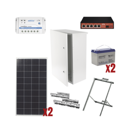 Kit Solar Witek de 28 W con 5 Puertos PoE 802.3 af y PoE Pasivo 24 V para alimentar Camaras IP y un Enlace Punto a Punto en 24 Vcc