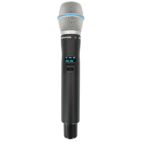 Micrófono Mano Inalámbrico EP-59H | Rango Frecuencia 470-510MHz, 540-590MHz, 640-690MHz, 807-830MHz | Potencia Salida ≥10dBm | Autonomía >10 Horas | Mute Automático por Caída | Display OLED | 7 Niveles Potencia Aju
