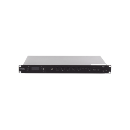 Amplificador de Audio | 1 canal | 350 W | Sistema 100V y Baja Impedancia | 4 Entradas de Micrófono Balanceadas | Bluetooth | USB | SD | FM | Montaje en Rack