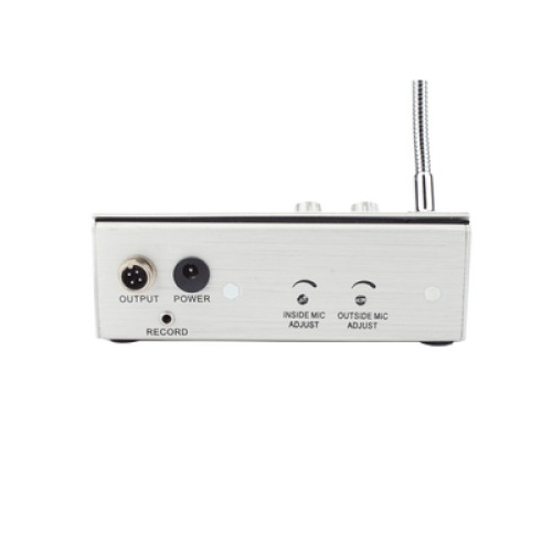 - Tiene un conector de salida de grabación que permite emitir una señal de grabación continua, incluso si se baja el volumen o se apaga el interruptor, compatible con sistemas de monitoreo y tarjetas de grabación.