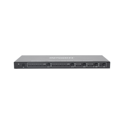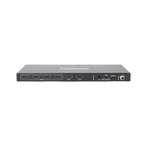 - Admite extraer audio del dispositivo fuente de entrada HDMI de OUT A o OUT B a salida óptica y analógica L/R OUT A y OUT B admitir la función de reducción de escala de 4K a 1080P