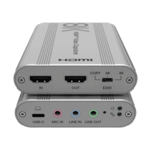 La tarjeta de captura HDMI 8K a USB 3.2 Gen 1 EPC-UH80 es un dispositivo de alta gama diseñado para profesionales del streaming, producción de video y aplicaciones de broadcasting. Con capacidad para capturar señales de video hasta 8K a 60 Hz y 4K2K a 144 Hz con HDR, ofrece un rendimiento excepcional gracias a su ancho de banda HDMI de 48 Gbps y velocidad USB de 5 Gbps. Su construcción en aluminio asegura disipación térmica óptima y durabilidad, mientras que las funciones avanzadas de mezcla de audio y compatibilidad multiplataforma la convierten en la solución ideal para entornos profesionales.