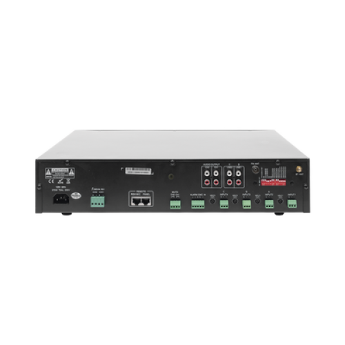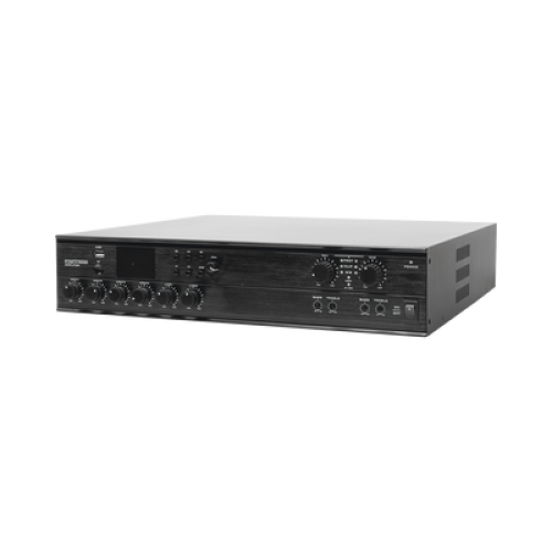 - Amplificador de potencia digital de alto rendimiento impedancia/voltaje. Potencia de 240W por zona (4-16R/100V) con salidas de 2
