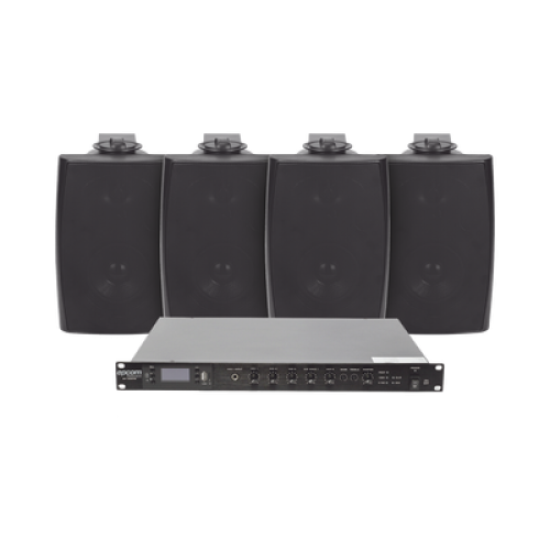 KIT de Amplificador de Audio 120W para Rack | 4 Altavoces de Pared color Negro 2.5W - 20W | Sistema 70/100V