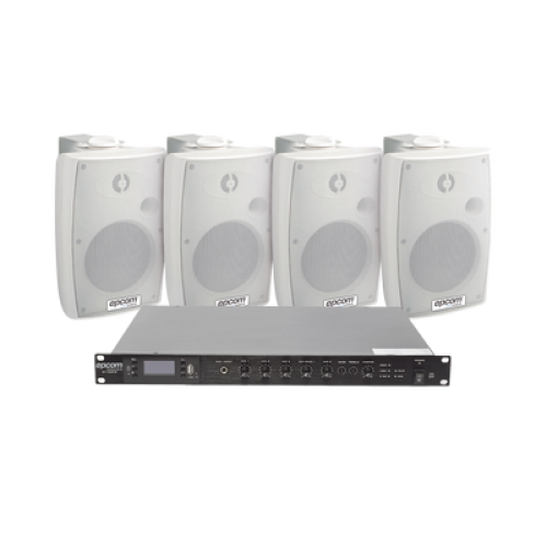KIT de Amplificador de Audio 120W para Rack | 4 Altavoces de Pared color Blanco 2.5W - 20W | Sistema 70/100V